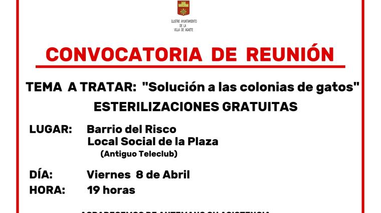 El próximo viernes 8 de Abril, a partir de las 19:00 horas, en el local social de la plaza del Risco, se llevará a cabo una reunión para tratar el tema de la Solución a las Colon