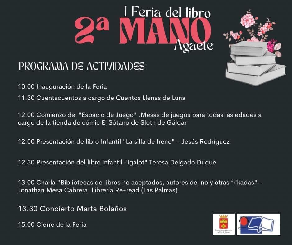 I Feria del Libro de 2ª Mano, mañana sábado 30 de abril de 10:00 a 15.00 horas, en la Plaza de la Constitución. Una oportunidad de reciclaje , una mañana de cuentos, juegos de mesa, presentaciones de libros infantiles y un concierto en acústico de Marta Bolaños.