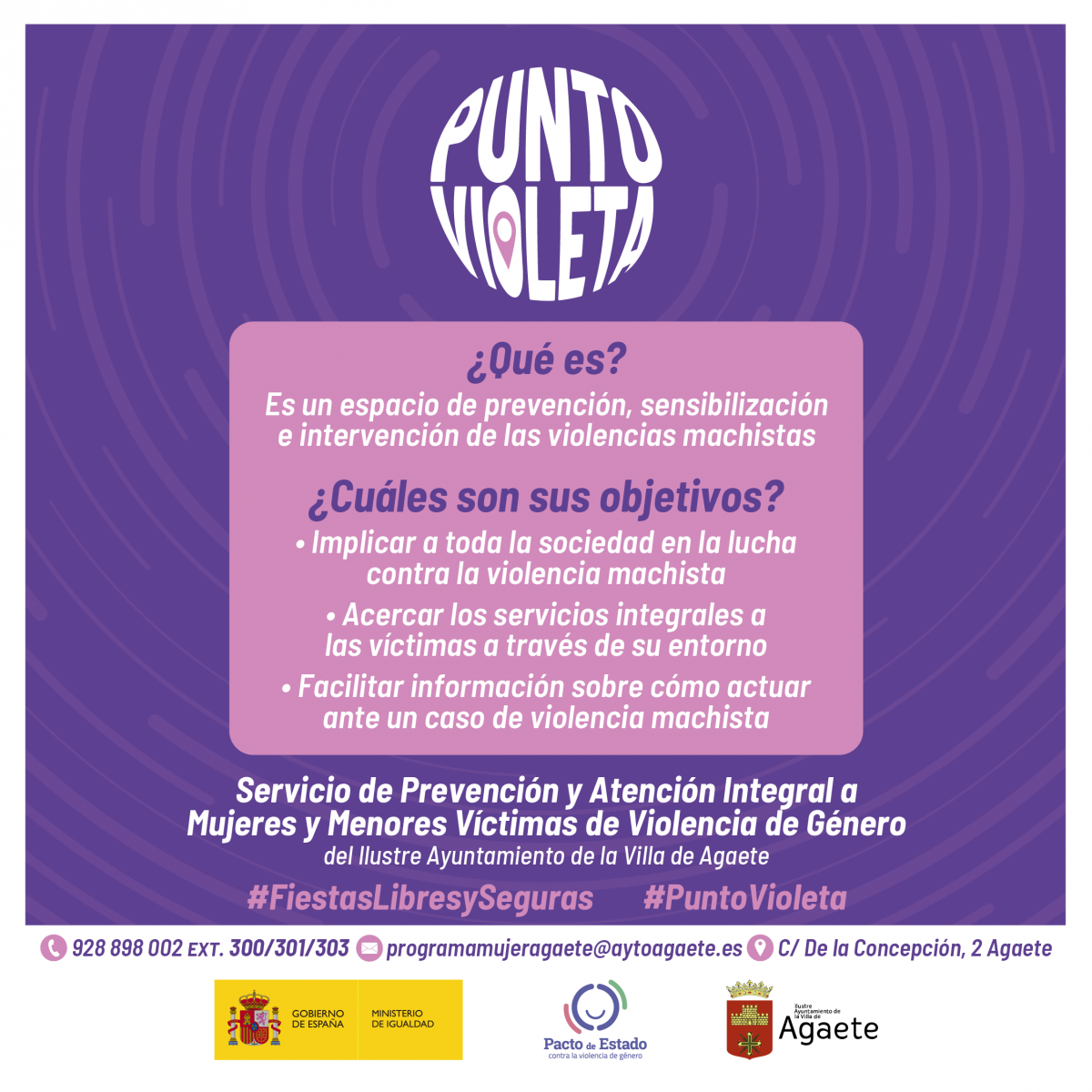 El Ayuntamiento de Agaete a través de la Concejalía de Igualdad y Diversidad que dirige el tercer teniente de alcalde Mario Nuez Sosa junto a su equipo informa que con el objetivo de garantizar un ambiente seguro y libre de violencia durante el Carnaval de nuestro municipio, se instalará un Punto Violeta.