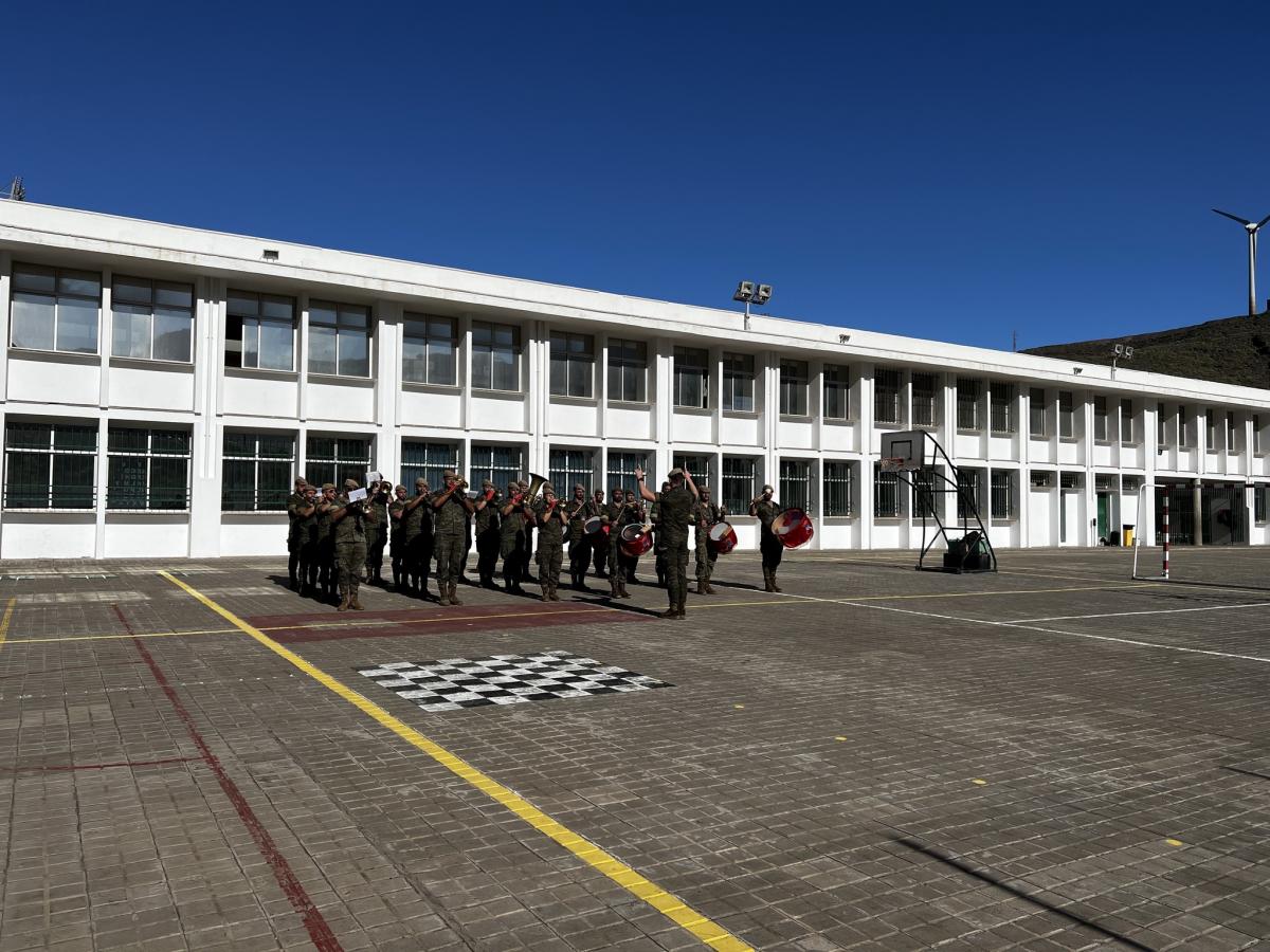Los músicos del Ejército han acompañado a los alumnos y alumnas de Agaete en un día muy especial, donde han podido disfrutar de alguno de los temas clásicos de las tropas, además de otras canciones conocidas, como bandas sonoras de películas.