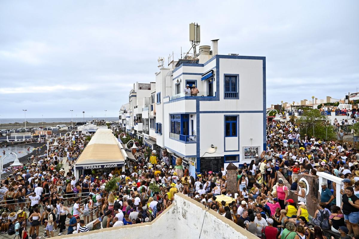 Camino al Puerto de Las Nieves, la alegría y el baile se expanden llenando todos los rincones del pueblo a la costa, donde los romeros/as han bañado sus ramas en el mar como es tradición. La banda de Agaete y la Banda Guayedra, siempre poniendo música al día, han sido quienes han marcado el paso de los miles de vecinos/as y visitantes por las calles del barrio costero, que cumplían así con su cita con su Virgen.