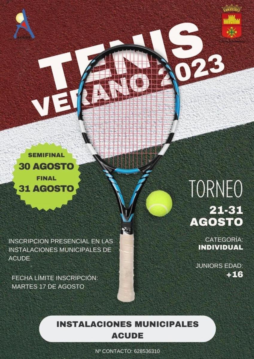 Por otra parte, los amantes del tenis contarán con el torneo Tenis Verano 2023 que se celebrará del 21-31 de agosto en categoría individual con edad +16. Este torneo tendrá habilitada la inscripción hasta el próximo 17 de agosto en formato presencial en las instalaciones municipales de Acude.