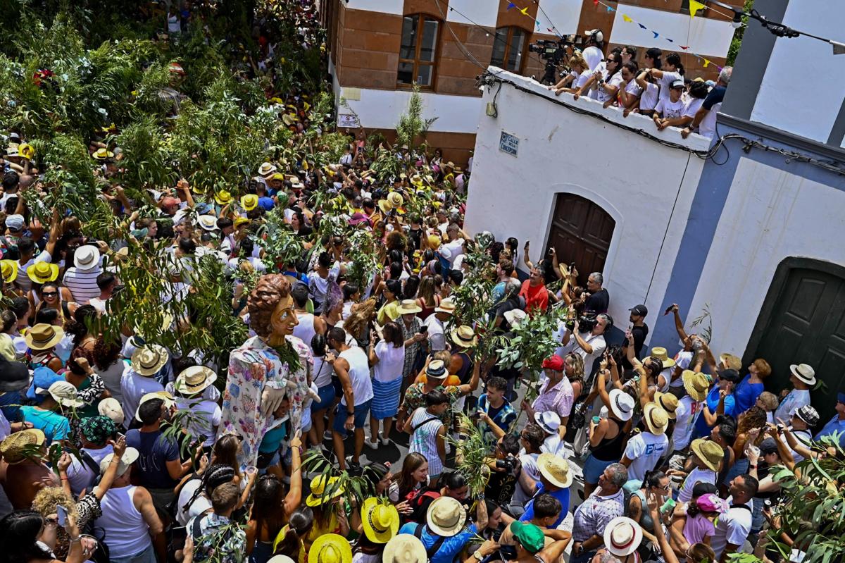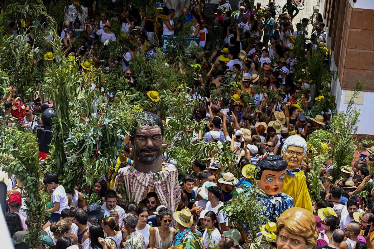 El corte en el Callejón de La Rama y la apoteósica bajada por la calle Guayarmina han hecho al pueblo vibrar con una fiesta que enamora a todos/as, en la que se mezclan todas las lenguas y visitantes de toda la isla, de España y fieles extranjeros/as que no se pierden su cita anual con la Villa Marinera. Los papagüevos y las bandas marcaron el paso, y con estos gigantones las principales vías del municipios se llenaron del color de sus trajes y de sus icónicos bailes camino desde el casco hasta el Puerto de las Nieves, donde la Banda Guayedra ha tomado el relevo para que tradición, cultura y celebración se den la mano, en un evento que hasta el momento no ha registrado incidentes reseñables.