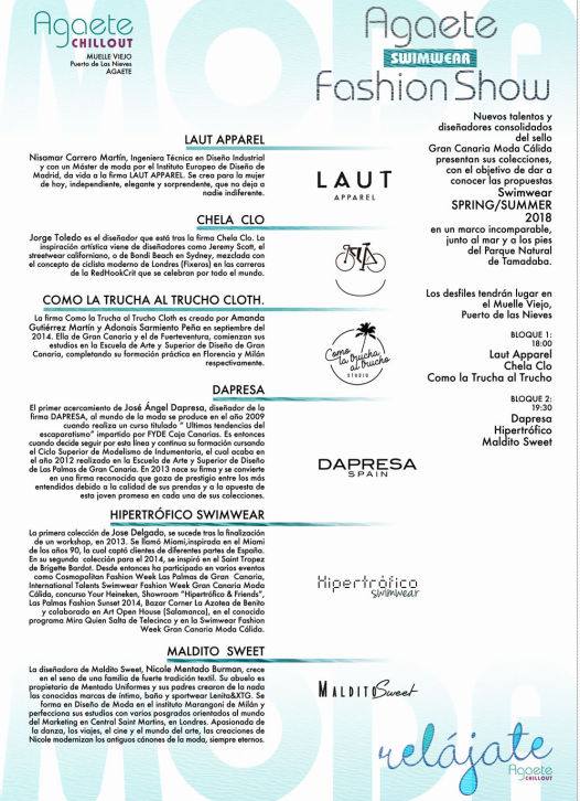 'Agaete Swimwear Fashion Show' mostrará las mejores creaciones de moda de baño de seis marcas de diseñadores canarios. Tendrá lugar este sábado 30 de septiembre de 2017 a las 18.00 horas en el Puerto de Las Nieves en el marco de la celebración de 'Agaete Chill Out'.