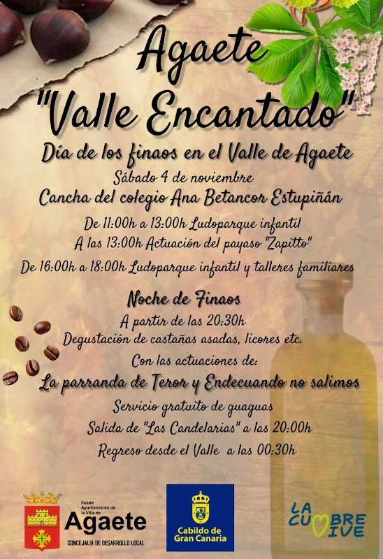 Esta iniciativa, organizada por la concejalía de Desarrollo Local del Ayuntamiento de Agaete, propone vivir el Día de los Finaos con una programación intensa, que arrancará el sábado 4 de noviembre en la cancha del colegio Ana Betancor Estupiñán con un ludoparque infantil de 11 a 13 horas, la el payaso Zappito a las 13 horas y ludoparque y talleres infantiles de 16 a 18 horas, para un día pensado también para los/as más pequeños/as de la casa y las familias.