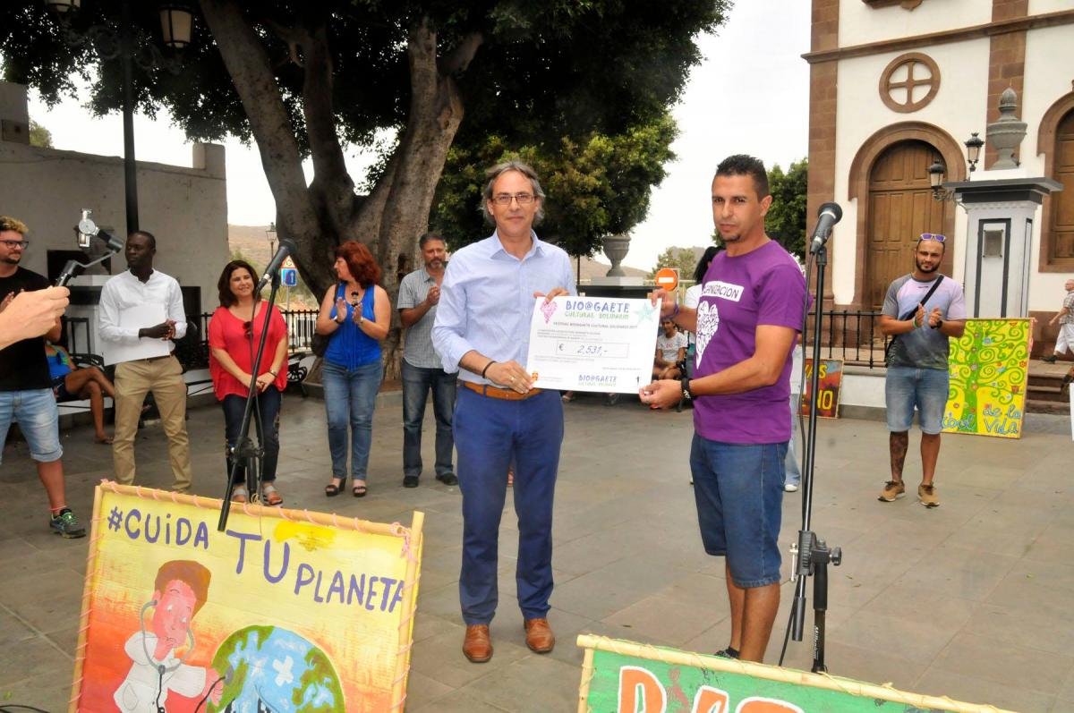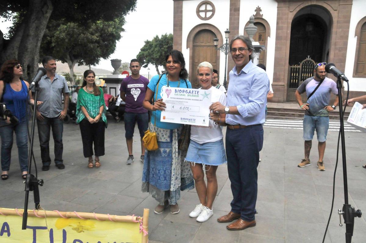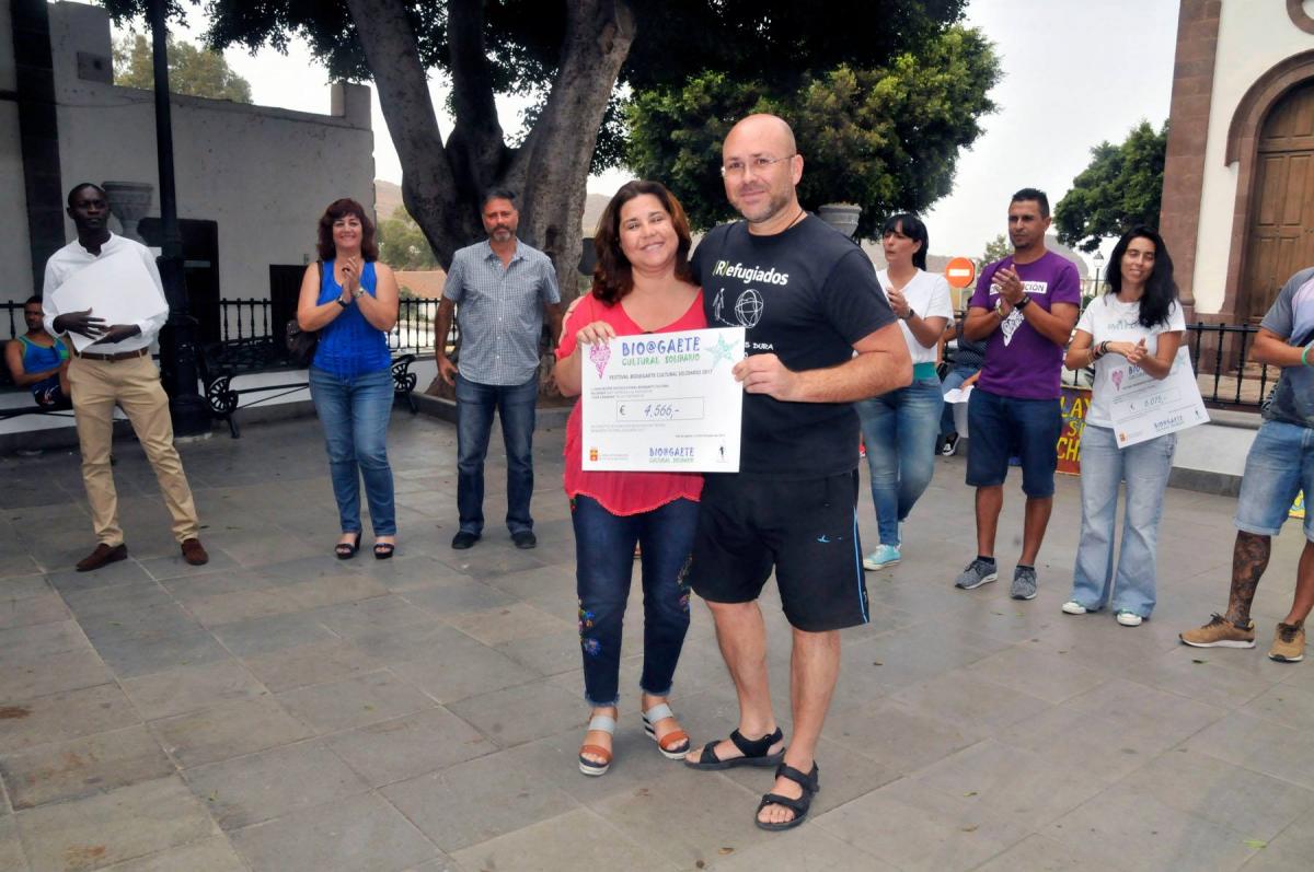 La Plaza de la Constitución ha acogido el acto de entrega de los donativos reunidos durante la celebración del Festival Bio@gaete Cultural Solidario 2017 que tuvo lugar en el barrio costero de Las Nieves el pasado mes de septiembre.