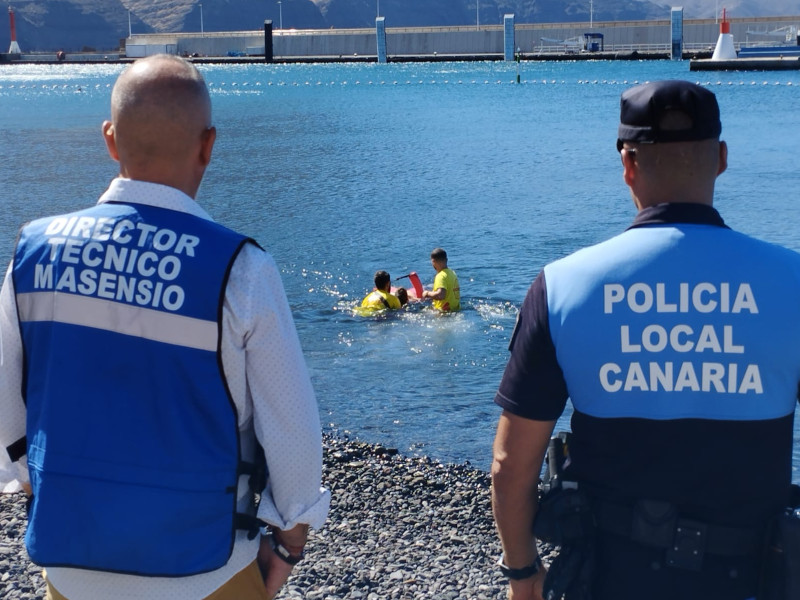 El Ayuntamiento de Agaete, la concejalía de Playas y la empresa MAsensio en coordinación con los diferentes medios municipales de seguridad y emergencias (Policía Local, Protección Civil y empresa adjudicataria del servicio de socorrismo en playas municipales), han realizado un simulacro de rescate en la Playa de Las Nieves de Agaete, dentro de la implantación Plan de Playas Municipal.