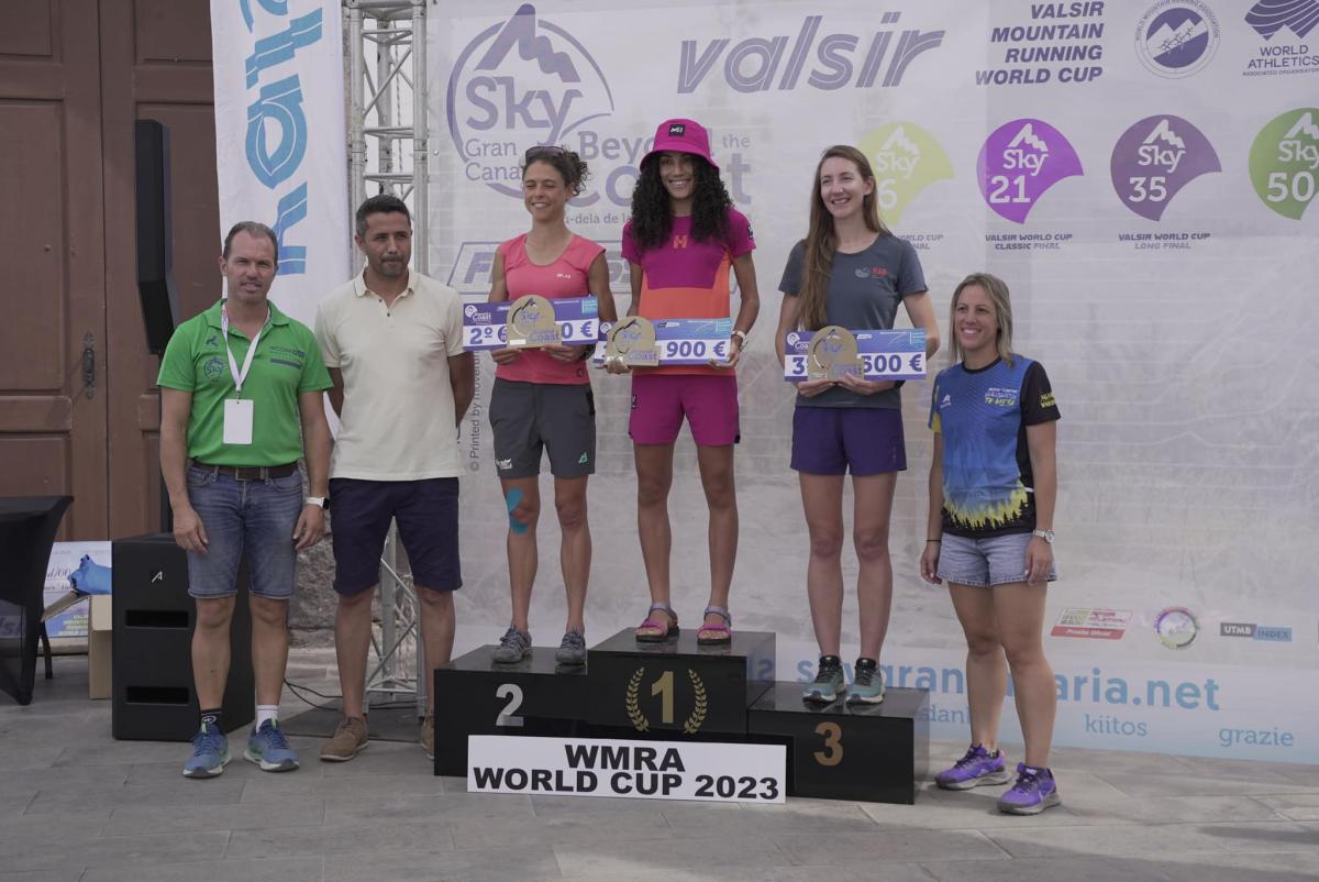En la categoría femenina, Joyce Njeru volvió a brillar, completando una temporada estelar. Detrás de ella, la keniata Philaries Kisang y la británica Scout Adkin, campeona de la uphill, ocuparon el segundo y tercer lugar respectivamente. Lucy Murigi, bicampeona keniata de la Copa del Mundo en 2019 y 2020, mostró su nivel competitivo, siendo superada por Njeru, que acumula ya tres años ganando la Copa. Charlotte Cotton, de Bélgica, finalizó en el quinto lugar, mientras que la canaria Lorena Padrón sorprendió al llegar en sexta posición, liderando a las féminas canarias en esta competición.