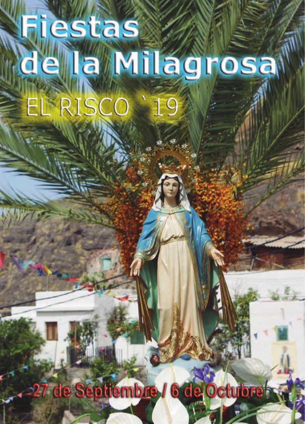 El barrio de El Risco inicia la cuenta atrás para celebrar las fiestas en honor a su patrona, Nuestra Señora de La Milagrosa, que tendrá su inicio el próximo viernes, 27 de septiembre con el acto de Subida de Bandera a cargo de la vecina, Cándida Rosario Perdomo, y la posterior lectura del Pregón de la mano del vecino, Miguel Morata Martín, y concluirán el domingo, 6 de octubre, con el concierto de Los Muchachos.
