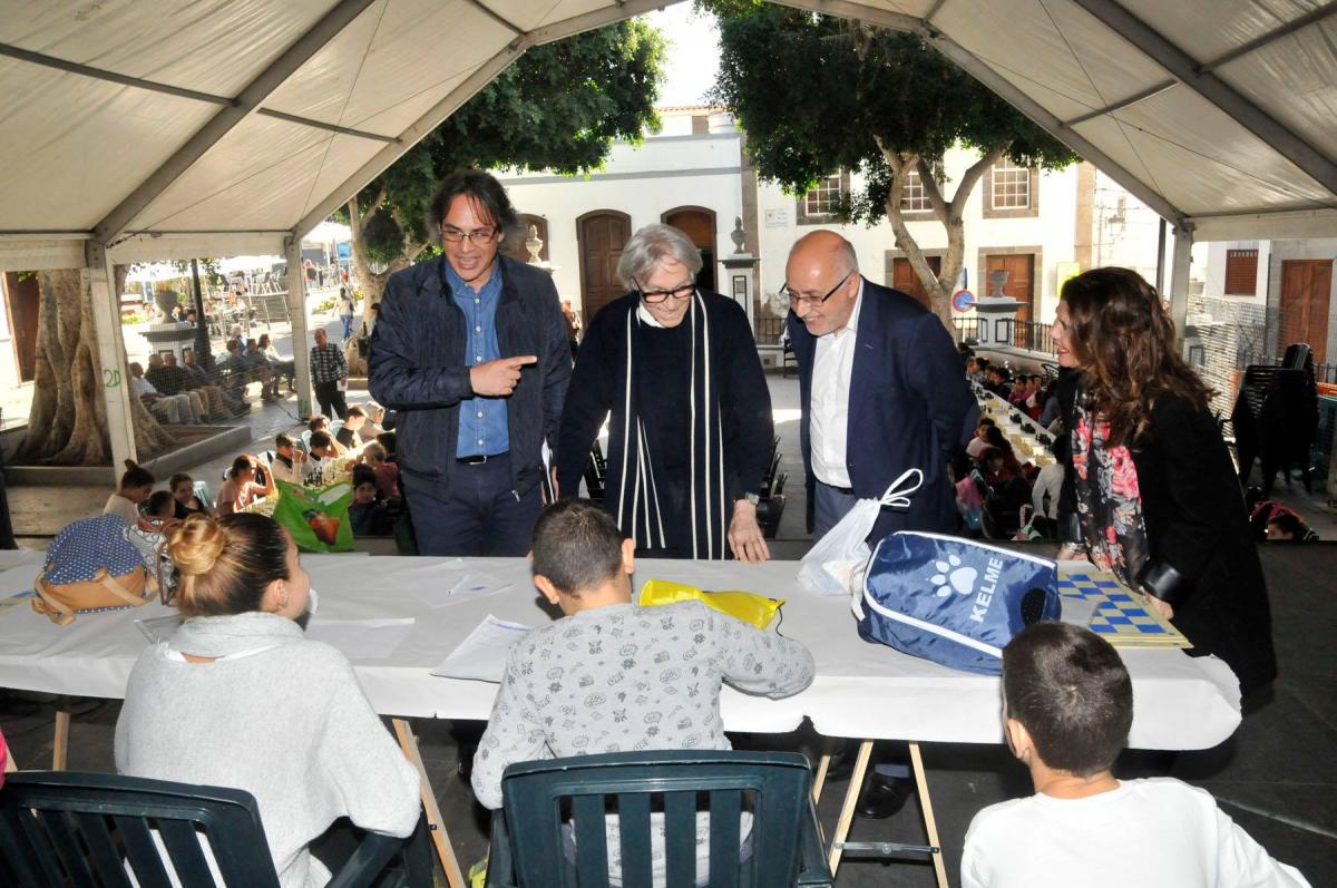 La Plaza de la Constitución ha acogido la celebración del III Encuentro de Ajedrez Escolar en una mañana festiva en la que no han faltado sorpresas como la donación al Ayuntamiento de una de las obras realizadas por la Asociación Canaria de Acuarelistas de Las Palmas de Gran Canaria.