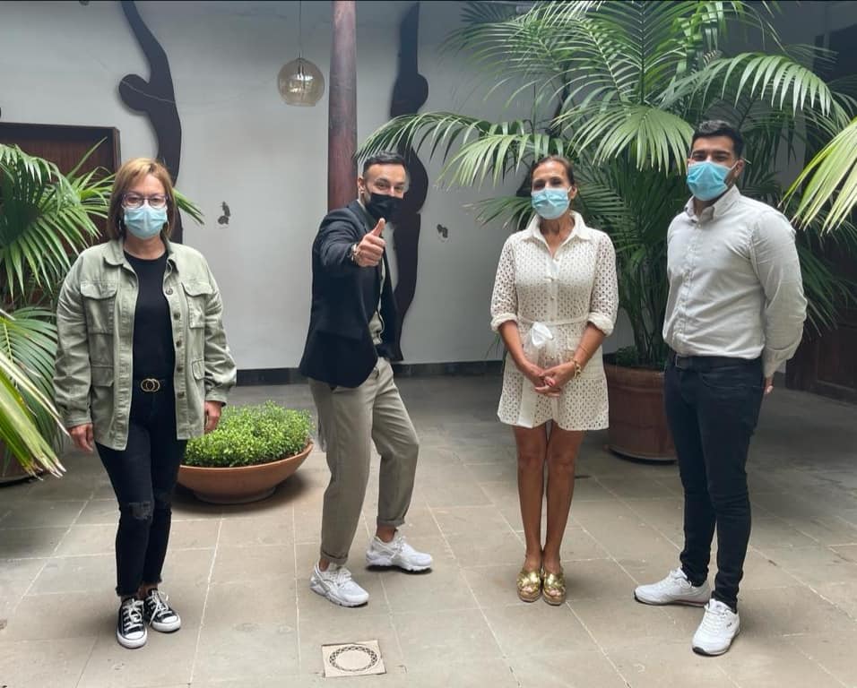 A continuación, Jadel fue recibido por la alcaldesa de Agaete, María del Carmen Rosario, y por los concejales Quionia Rosario y Alberto Cruz.