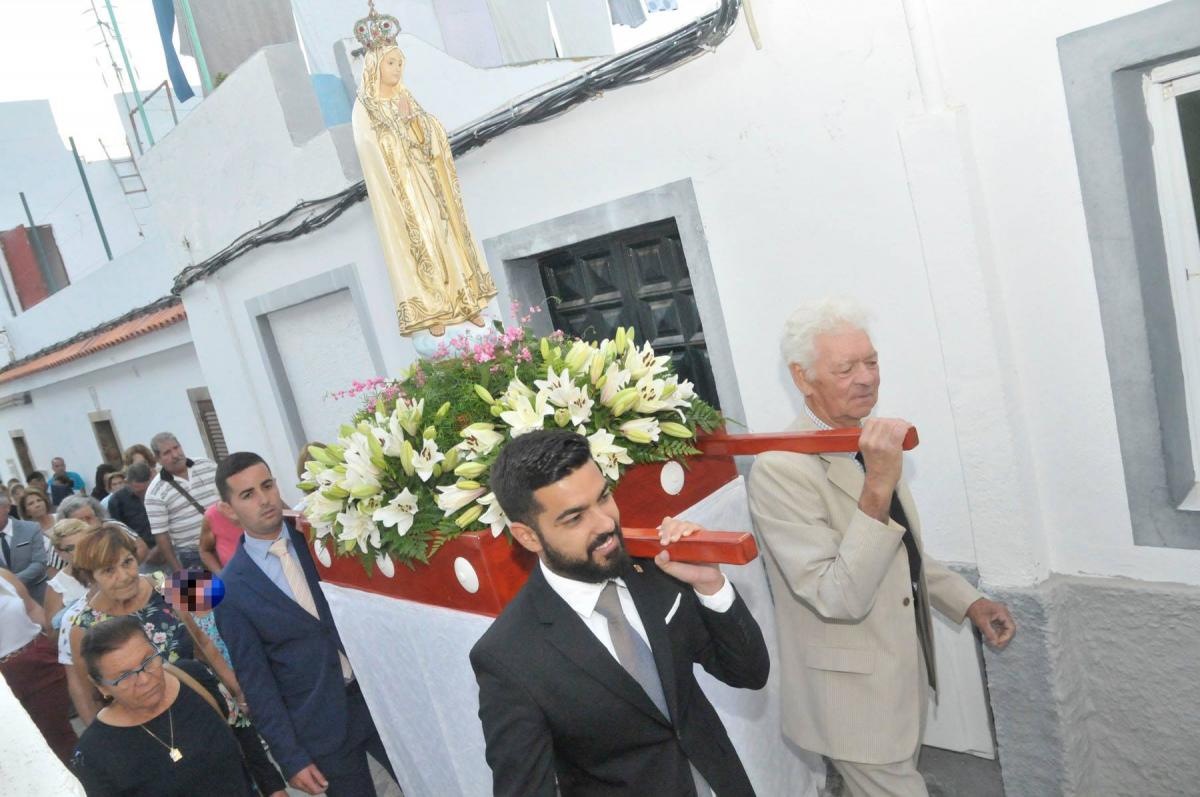 El acto comenzó con el Santo Rosario y posterior Eucaristía a cargo del párroco, Ricardo Miranda. Tras la Subida de Bandera, la imagen de la Virgen de Fátima recorrió en procesión el camino hasta la Iglesia de San Pedro acompañada por todas las personas asistentes y la música de la Banda de Las Nieves.