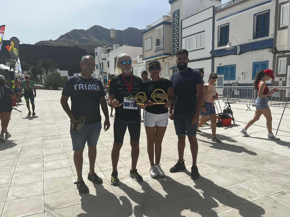 La mañana en la Villa se ha llenado de deporte con el aterrizaje de la Triaga Extreme de Agaete, que puso a prueba a los triatletas en su primera edición. Rubén Aragón (primera posición) y Arístides González (segundo clasificado) cruzaron juntos la meta de esta primera Triaga Extreme, con Yéssica Méndez como líder femenina de la carrera.