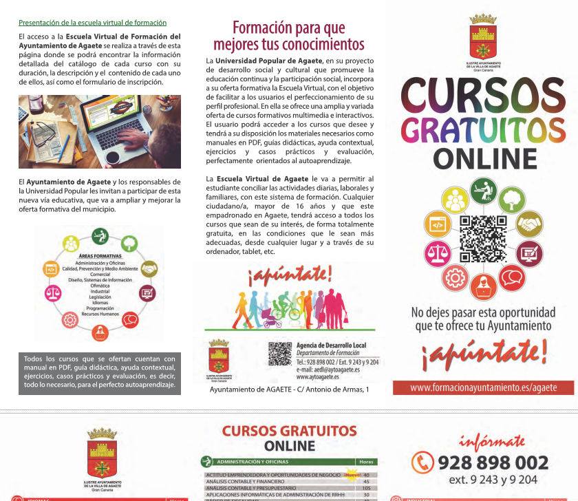 El Ayuntamiento de Agaete, a través de la Universidad Popular que dirige José Juan Molina, ha presentado los cursos gratuitos 'online' a los que podrán