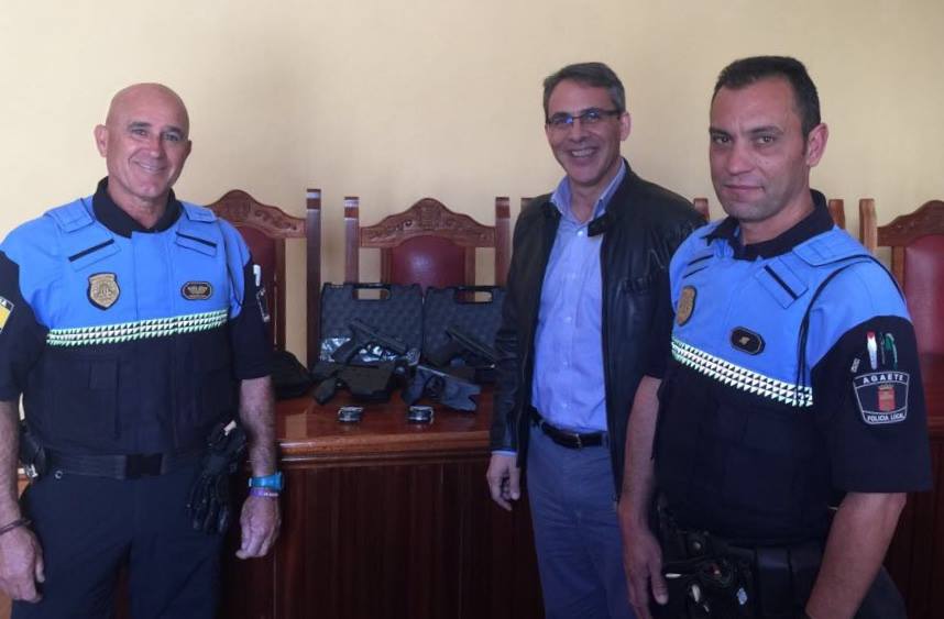 La Policía Local de Agaete ha renovado su equipamiento preventivo con la entrega de nueve pistolas Beretta y dos pistolas eléctricas no letales Taser que
