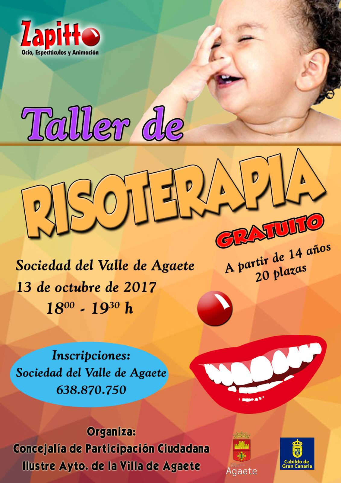 El Ayuntamiento de Agaete, a través de la Concejalía de Participación Ciudadana, y el Cabildo de Gran Canaria organizan un Taller de Risoterapia que tendrá