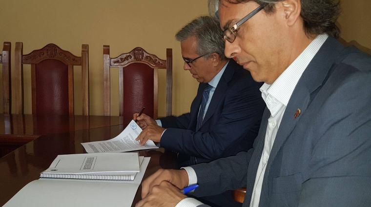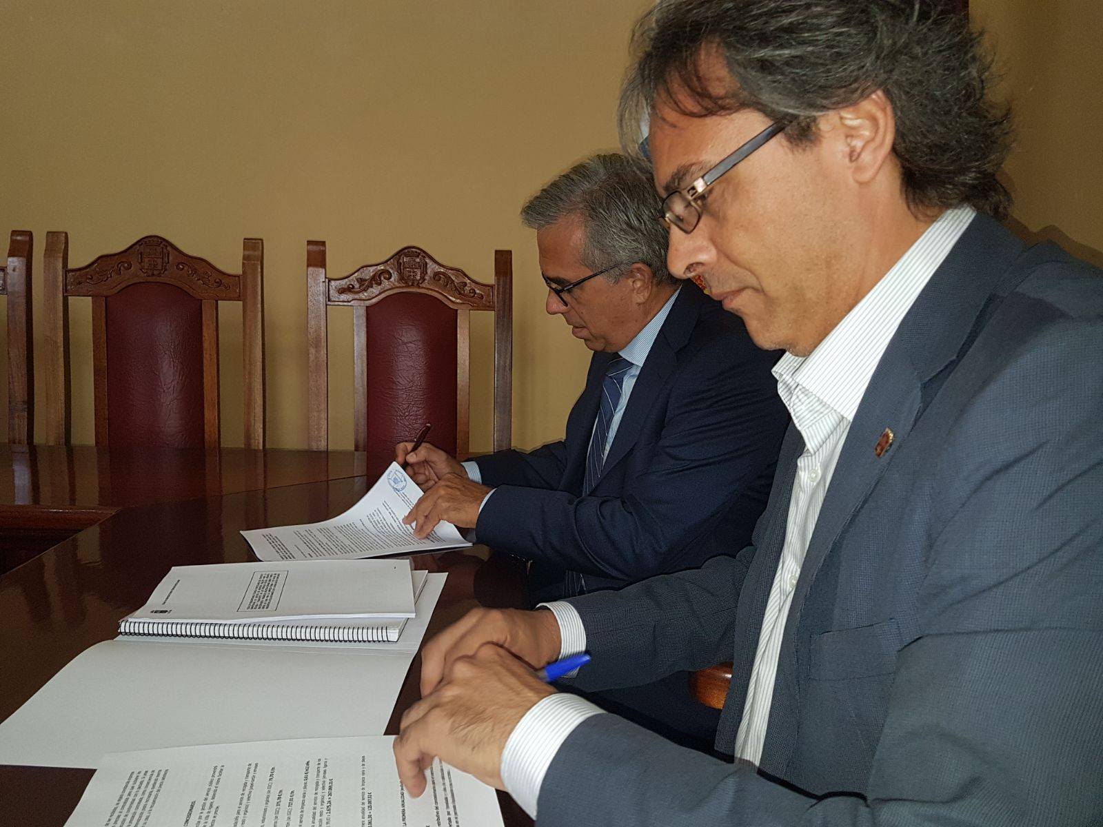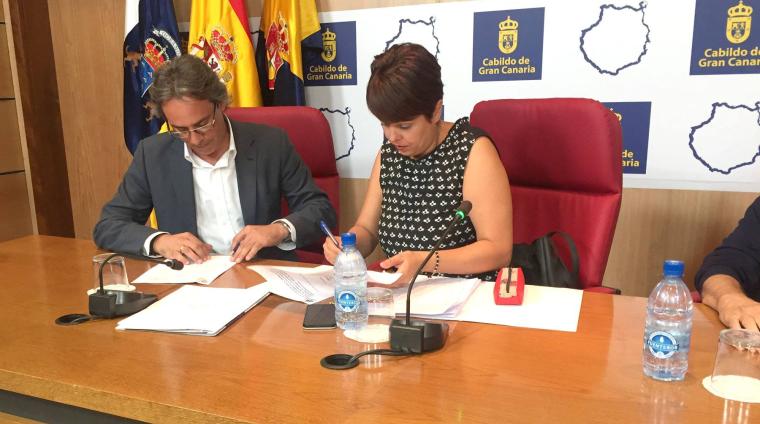 El alcalde del Ayuntamiento de Agaete, Juan Ramón Martín, y la consejera de Vivienda del Cabildo de Gran Canaria, Minerva Alonso, han firmado un convenio