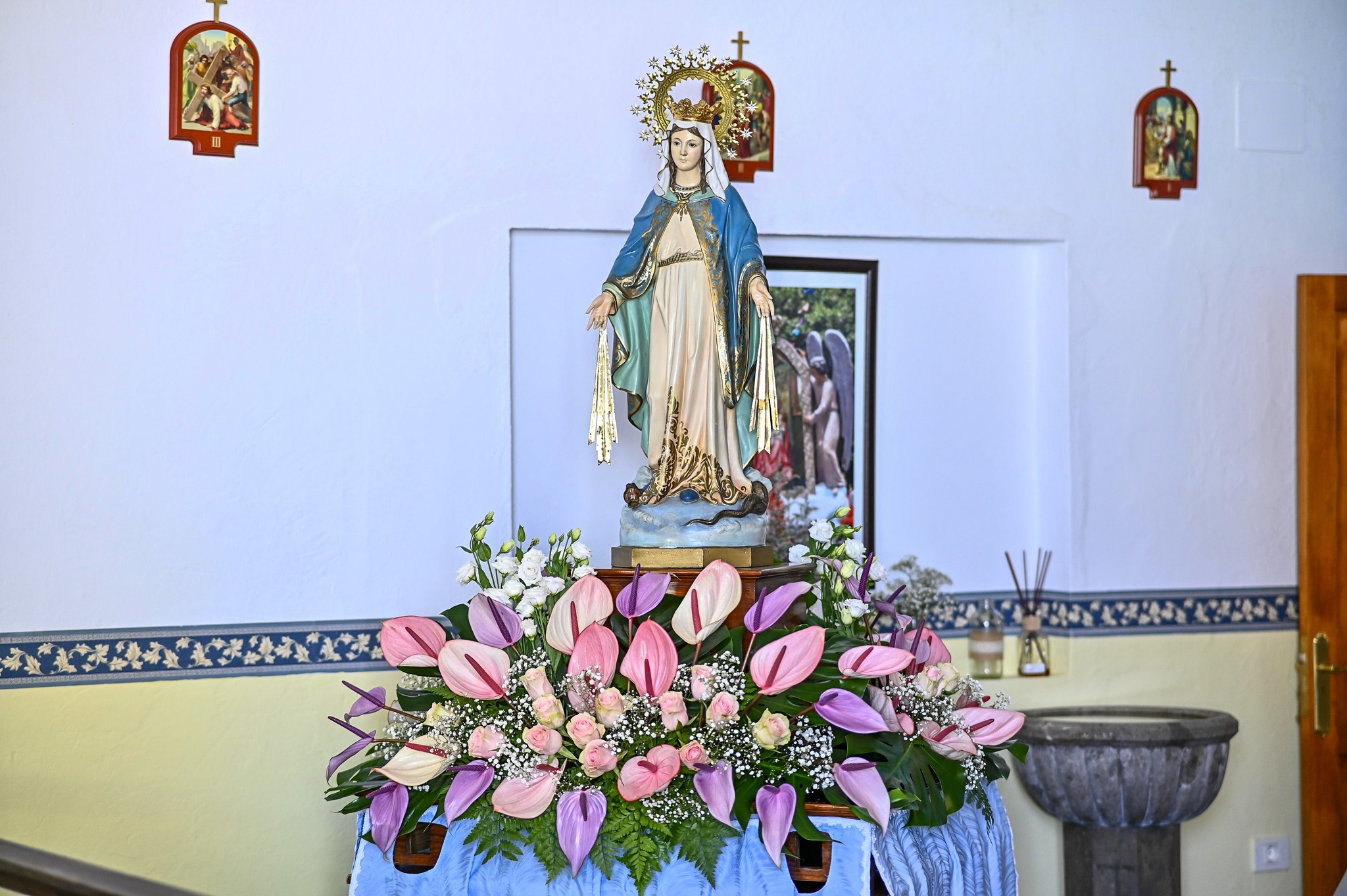 Vecinos y vecinas, visitantes, la Corporación municipal, representantes de la parroquia, la Asociación de Vecinos y la Banda Guiniguada han acompañado hoy a la imagen