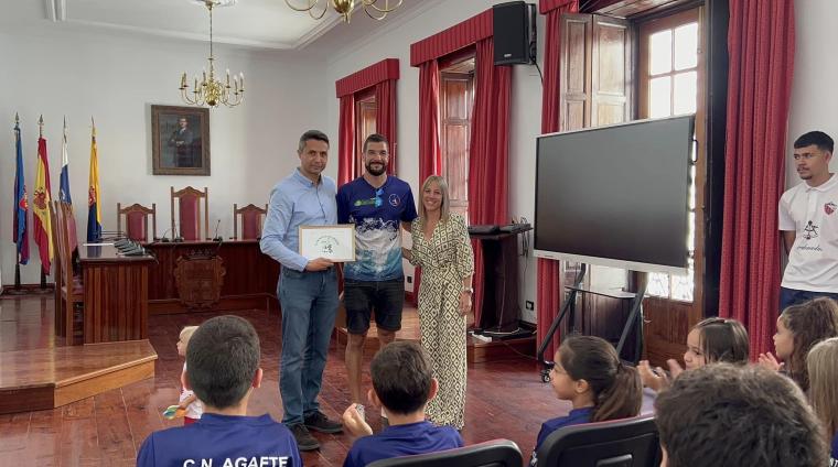 El CD Guayarmina y UD Agaete reciben una subvención municipal para el fomento del deporte. El Ayuntamiento de Agaete y la concejalía de Deportes, representados