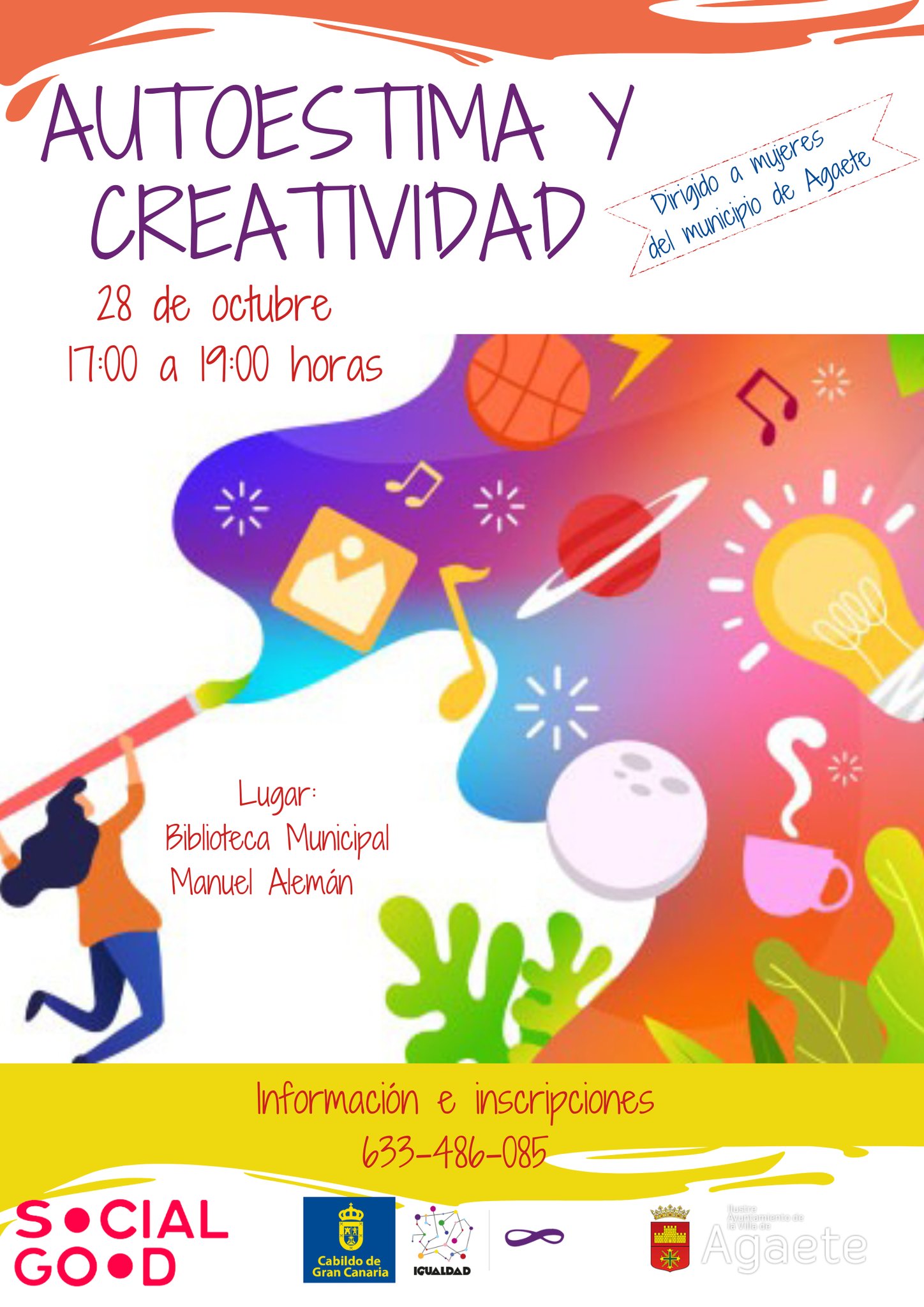 Este viernes 28 de octubre, se llevará a cabo el taller "Autoestima y creatividad", se enmarca dentro del Proyecto “Marco Estratégico por la Igualdad Gran