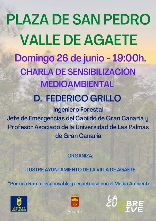 Este domingo 26 de junio, a partir de las 19:00 horas, en la Plaza de San Pedro, en el Valle de Agaete, "Charla de Sensibilización