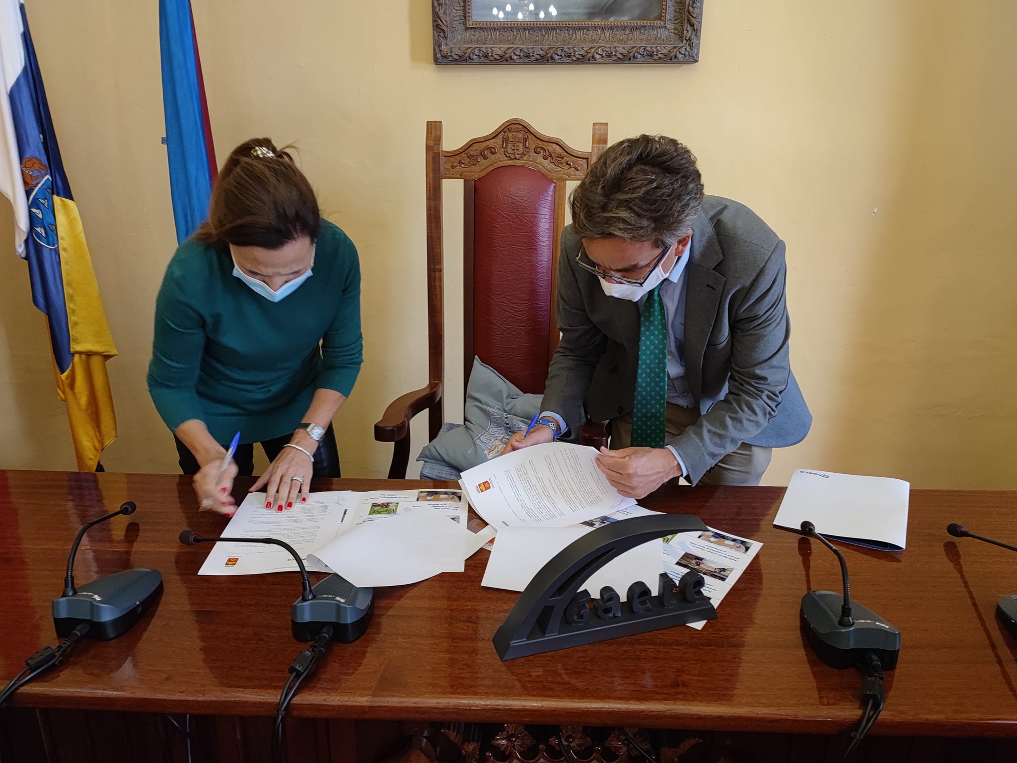 José María Segura Salvador, director general de Radio ECCA, y María del Carmen Rosario, alcaldesa del municipio de Agaete, firmaron en la mañana de hoy