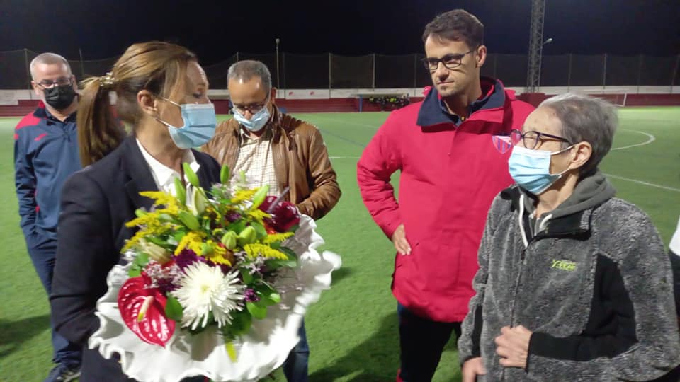 Los integrantes actuales y los históricos del equipo Unión Deportiva Agaete, junto al Ayuntamiento de Agaete, quisieron ayer rendir un sentido homenaje a Florencia Medina