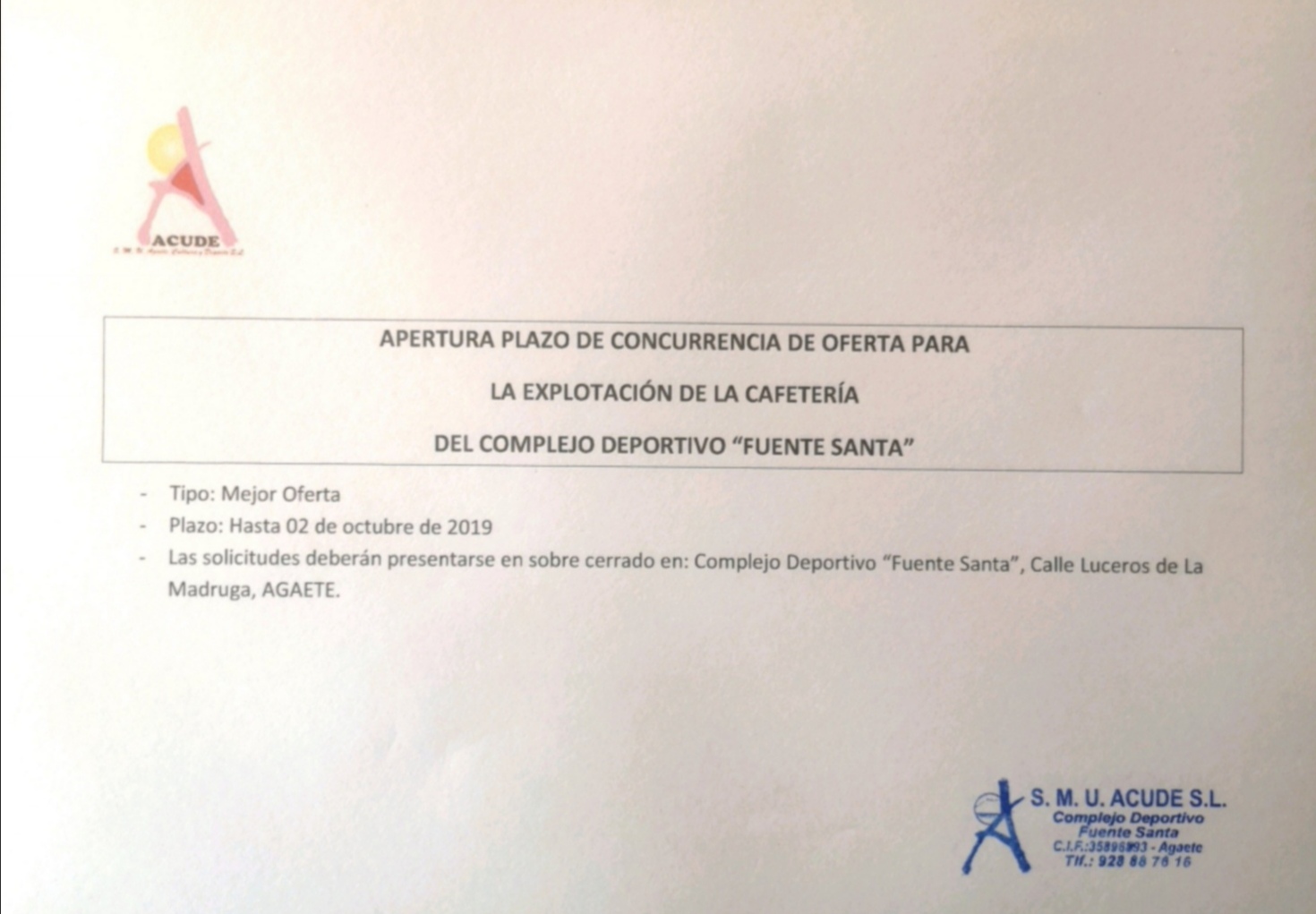 La Sociedad Municipal Cultura y Deportes (Acude) ha abierto el plazo de concurrencia de ofertas para la explotación de la cantina del Estadio ‘Alcalde Andrés