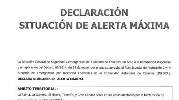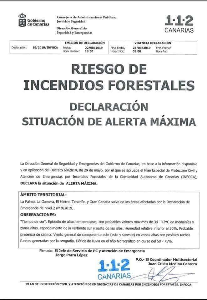 El Centro de Coordinación Municipal (Cecopal) del Ayuntamiento de Agaete, a instancia de la Dirección General de Seguridad y Emergencias del Gobierno de Canarias, informa
