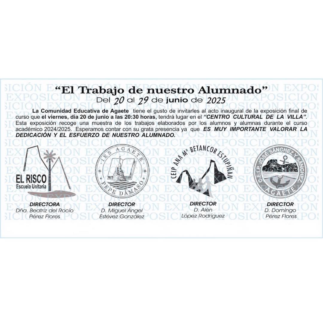 La comunidad educativa de Agaete muestra el trabajo del alumnado con una exposición del trabajo de fin de curso, que será inaugurada en el Centro Cultural a las 20.30 horas.