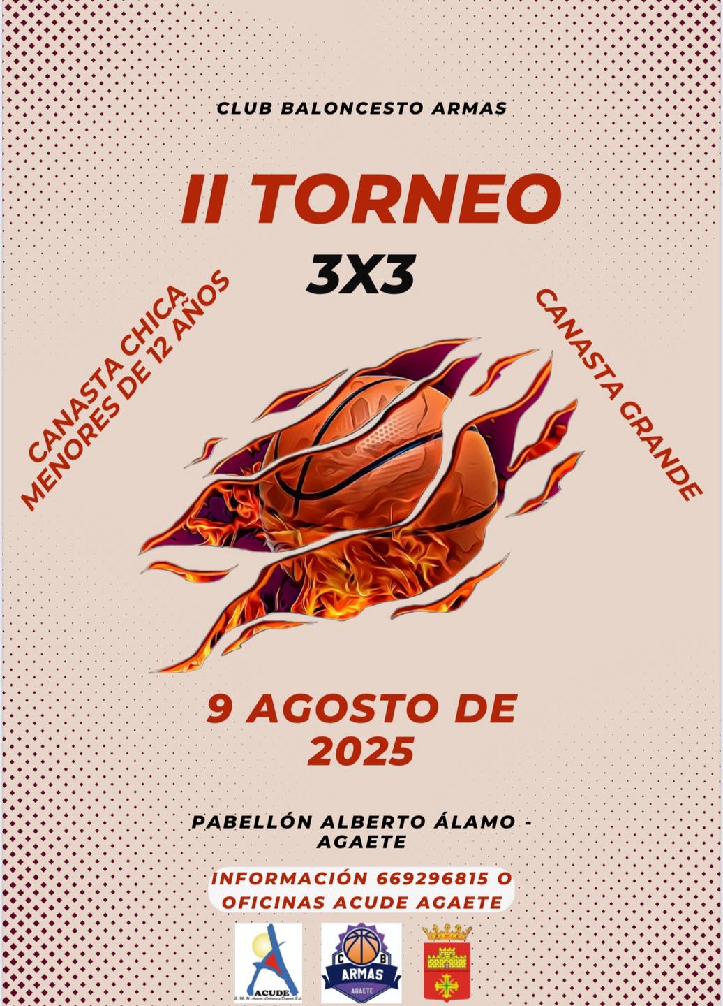 El Club Baloncesto Armas y el Ayuntamiento de Agaete celebran el II Torneo 3x3 para deportistas menores de 12 años en “canasta chica” y general en “canasta grande” para una gran jornada de deporte.