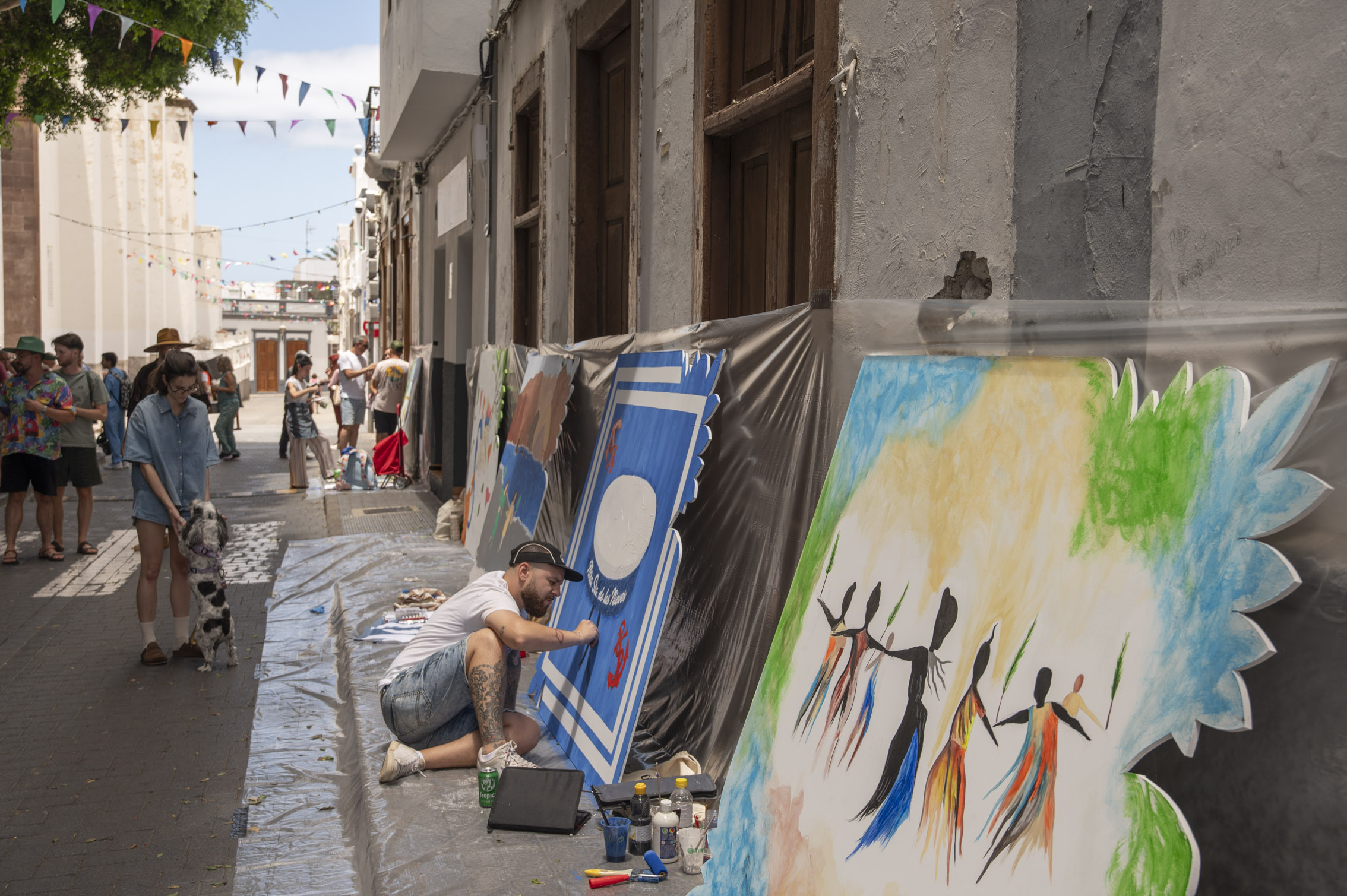 Profesionales y aficionados/as, amantes de La Rama y de la pintura han llenado las principales calles del casco con sus propuestas, convirtiendo el pueblo en epicentro de la ilusión de las fiestas que ya empiezan. Desde costa a cumbre, hay quienes han usado las coloridas banderillas de las calles como fuente de inspiración, también las ramas y los bucios, los voladores, versos, la arquitectura, el mar, las diferentes bandas que marcan el baile, los papagüevos... todo vale para llevar al lienzo una fiesta que es música, alegría y, sobre todo, tradición y sentimiento.