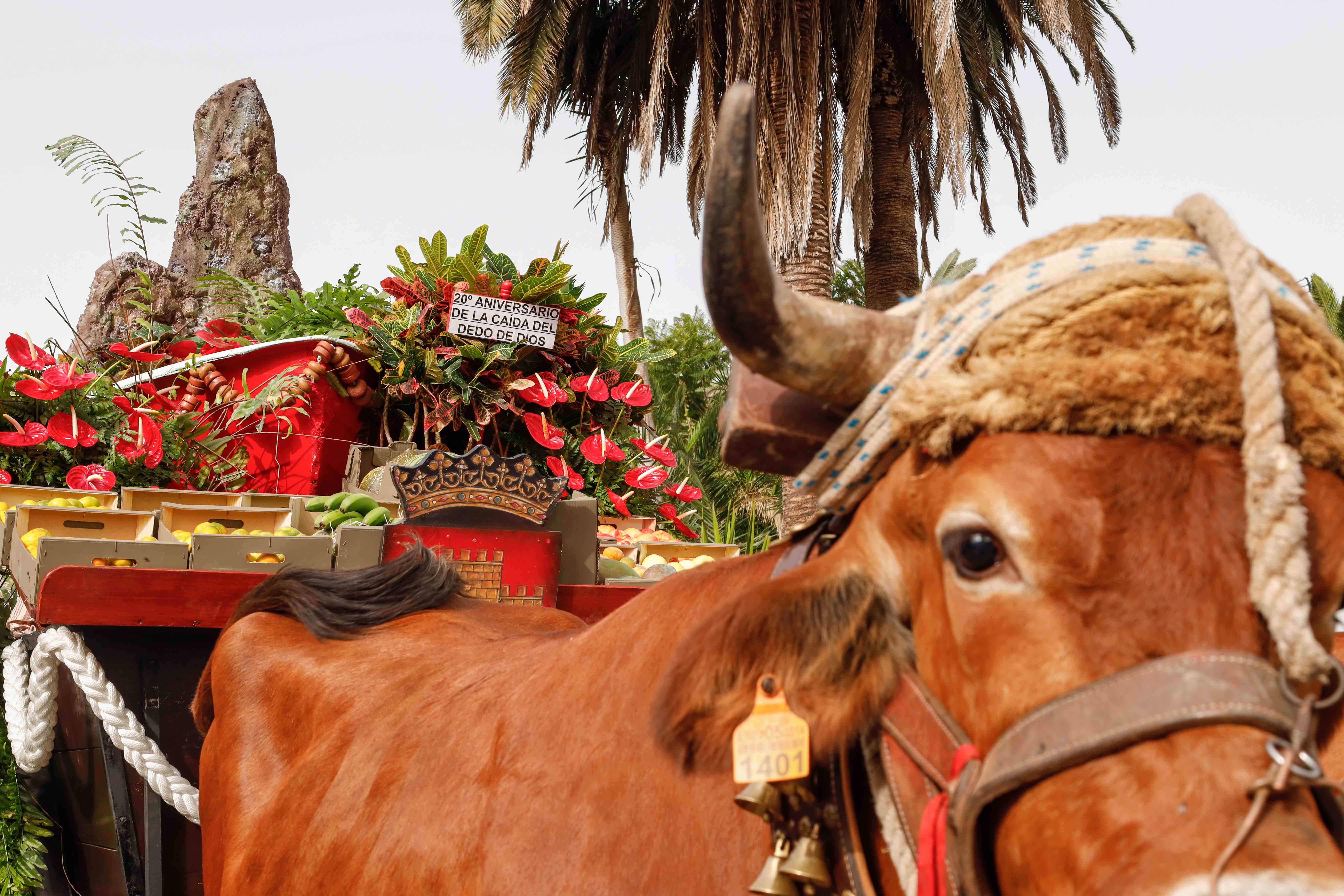 En esta 73ª edición, la carreta municipal del Ayuntamiento de Agaete, elaborada por el personal municipal, ha rendido homenaje al Dedo de Dios, uno de los símbolos naturales más reconocidos del municipio, que este año conmemora el 20º aniversario de su fractura a causa del temporal Delta en 2005. La propuesta ha querido destacar el valor patrimonial, cultural y emocional que este monumento natural representa para la identidad agaetense y para toda Gran Canaria.
