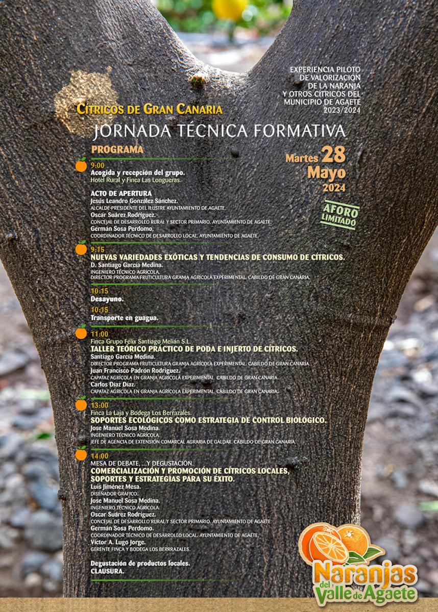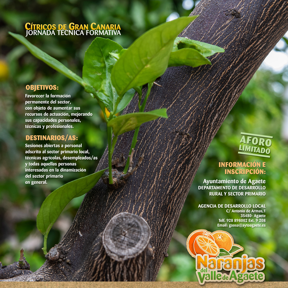 Villa de Agaete, 22 de mayo de 2024-. El Ayuntamiento de Agaete, a través de la Agencia de Desarrollo Local, y su departamento de Desarrollo Rural y Sector Primario, ha organizado para el próximo martes día 28 de mayo, en horario de 9.00 a 15.00 horas, una jornada técnica formativa dirigida al sector agrícola local, con el objeto de mejorar sus capacidades técnicas y profesionales.
