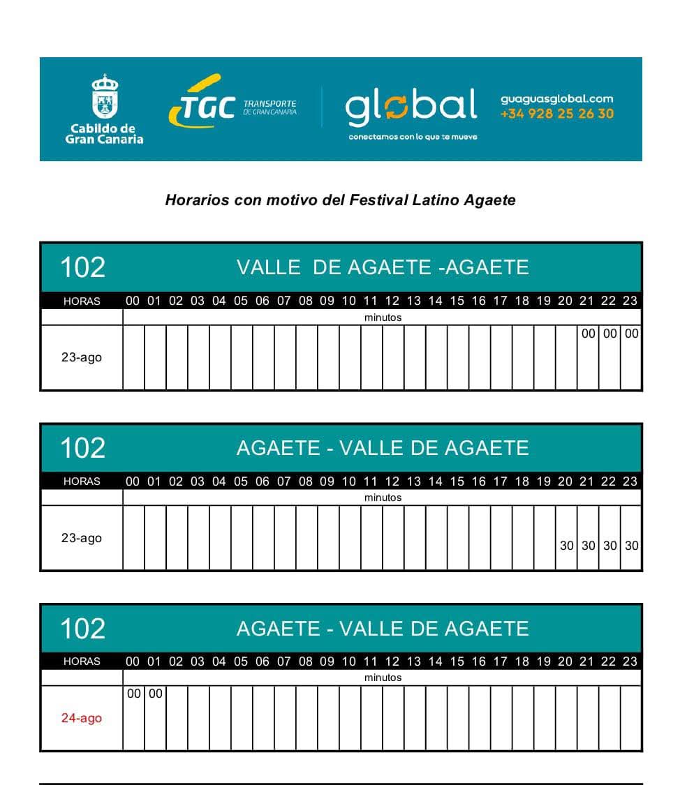 Hoy sábado día 23 de agosto, con motivo del Festival Latino, la compañía de guaguas Global reforzará la línea 102: