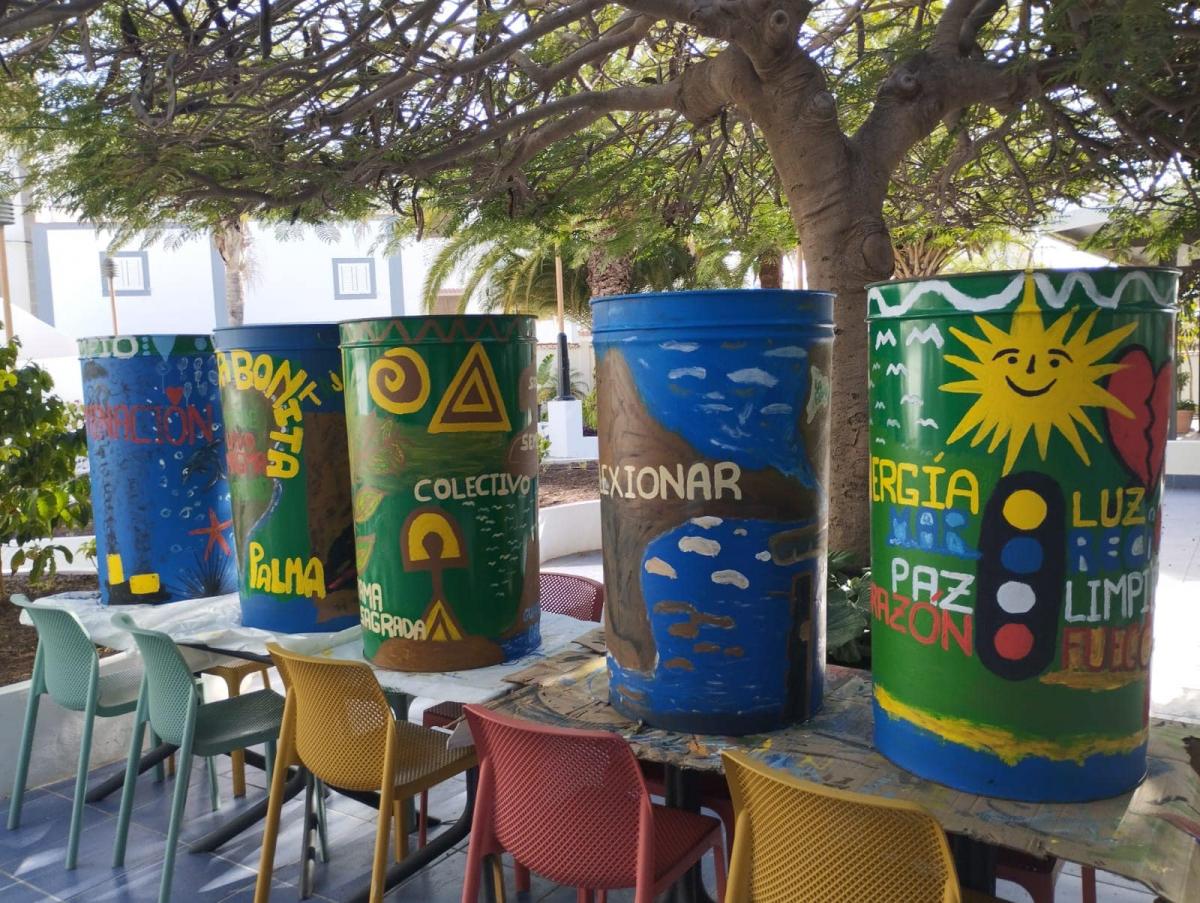 Los talleres de la concejalía de Juventud del Ayuntamiento de Agaete han puesto color al reciclaje y recogida de residuos en el municipio con una decena de jóvenes de entre 14 y 30 años que han participado en la decoración de bidones industriales para darles una creativa segunda vida.