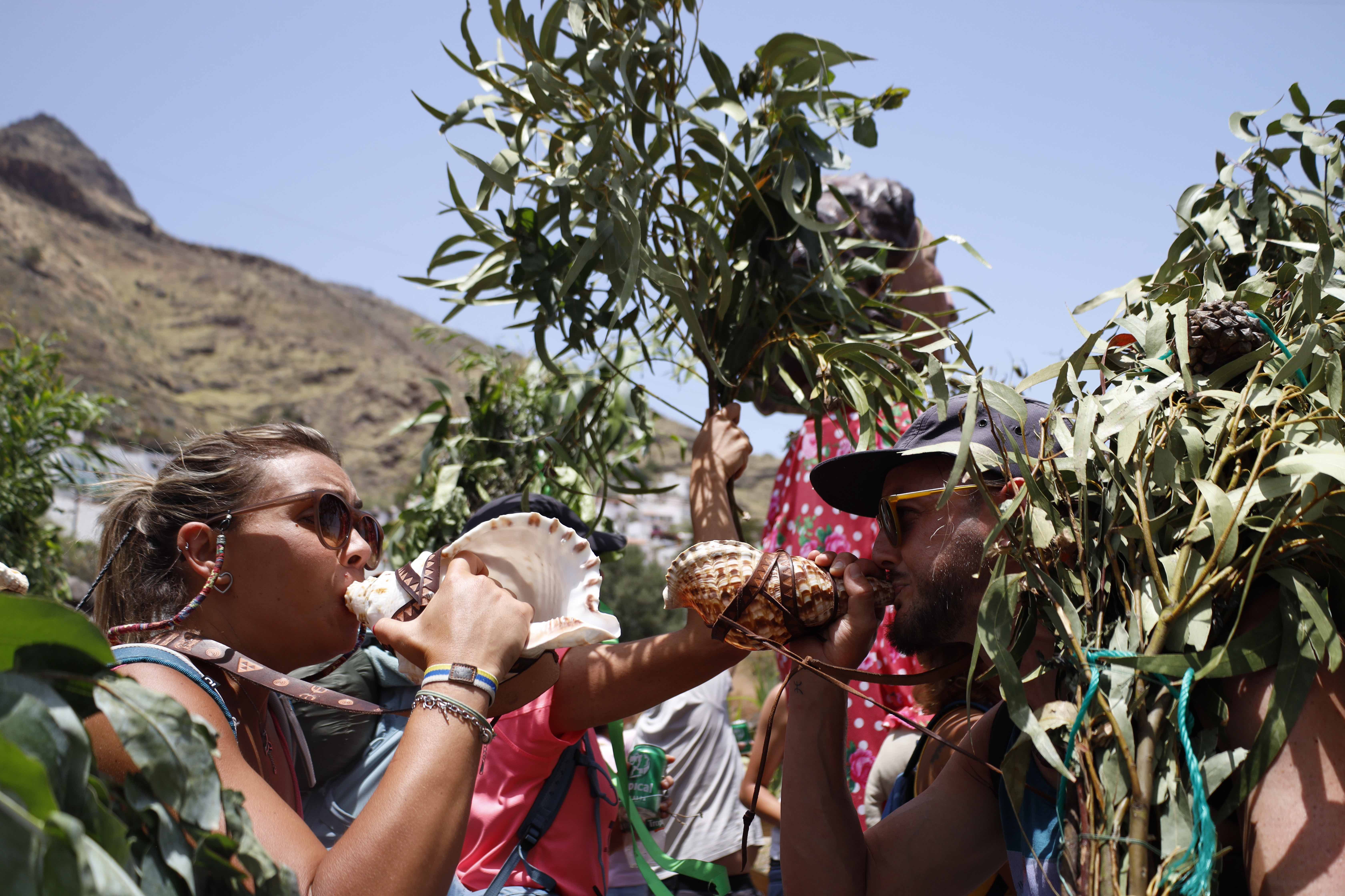 Desde primera hora de la mañana, todos los caminos llevaban al Valle de Agaete. Los romeros/as tomaban respiro en la Era del Molino, a donde el pueblo les fue a buscar para reunir una comitiva de ramas y alegría, al ritmo de la Banda de Agaete que marcó el inicio de una fiesta que los/as vallenses llevan dentro. Ni las altas temperaturas han podido con el compromiso del pueblo con San Pedro Apóstol, que ya luce arropado por el olor de las ramas cuidadosamente trabajadas traídas desde Tamadaba a la espera de sus fieles.