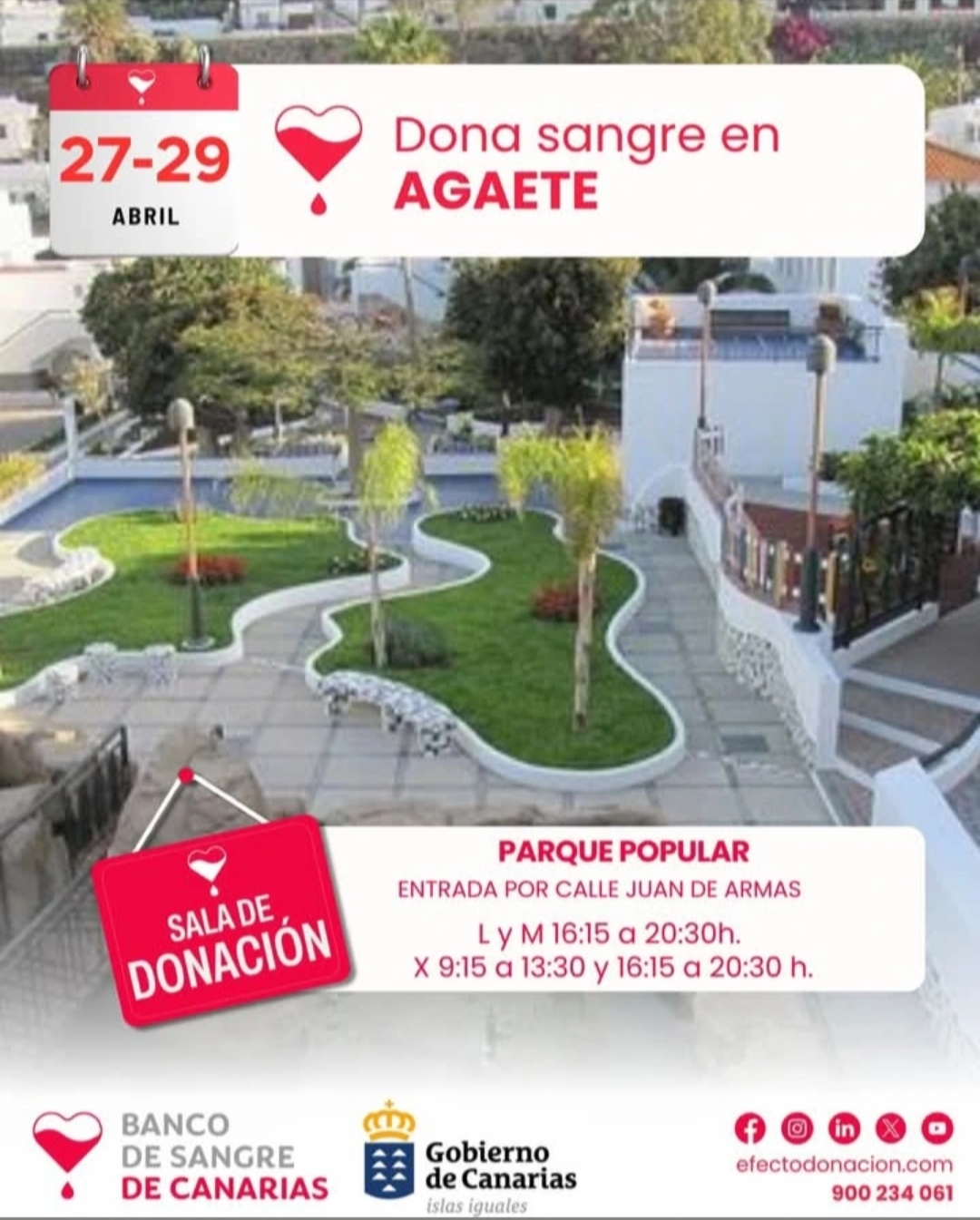 Este lunes, martes y miércoles 27, 28 y 29 de abril, la unidad móvil del Instituto Canario de Hemodonación y Hemoterapia estará ubicada en el
