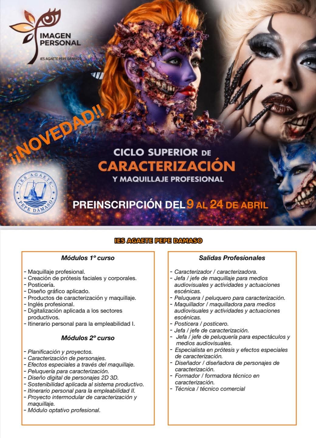 Agaete contará con un ciclo único en la isla en el IES Agaete Pepe Dámaso que incorpora a su oferta educativa el Ciclo Superior de Caracterización y Maquillaje Profesional, diseñado para formar a profesionales de alto nivel en las artes escénicas y visuales.