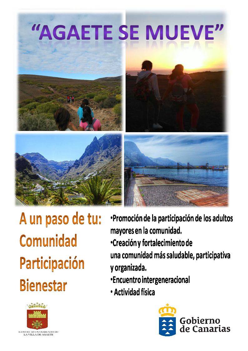 El Ayuntamiento de Agaete, a través de las concejalías de Educación, del Mayor y Servicios Sociales, y la colaboración del Centro de Salud de Agaete y el Proceso Socioeducativo y Comunitario ‘el Patio’ pone en marcha el proyecto de envejecimiento activo ‘Agaete se mueve’.