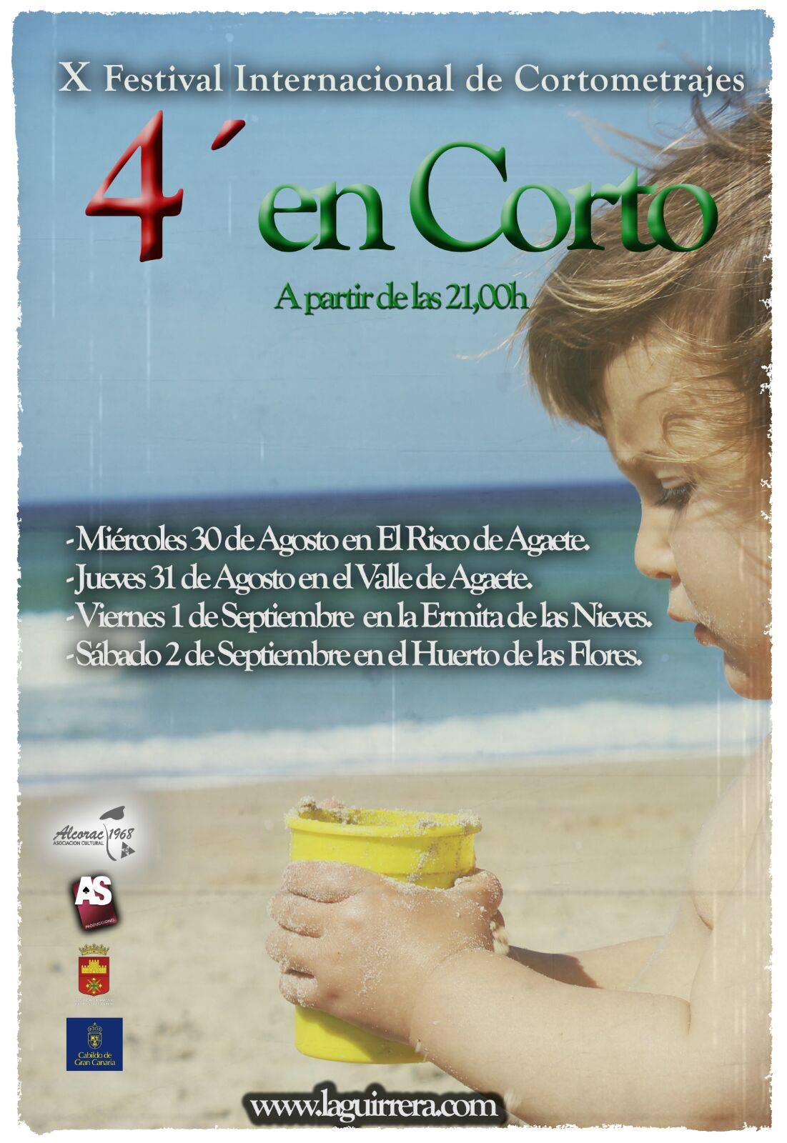 El mejor cine tendrá una nueva cita en la Villa de Agaete a partir del próximo día 30 de agosto con la llegada del X Festival Internacional de Cortometrajes 4’ en Corto que organiza el Ayuntamiento de Agaete, a través de la Concejalía de Cultura, y la Asociación Cultural Alcorac 1968.