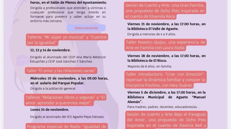 Con motivo del Día Internacional de la eliminación de la violencia contra las mujeres, el 25 de noviembre, Agaete contará con una programación de actividades