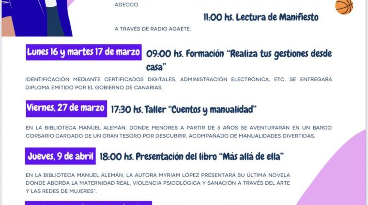 El Ayuntamiento de Agaete presenta el programa de actividades conmemorativas con motivo del Día Internacional de la Mujer, 8 de marzo, una agenda que se